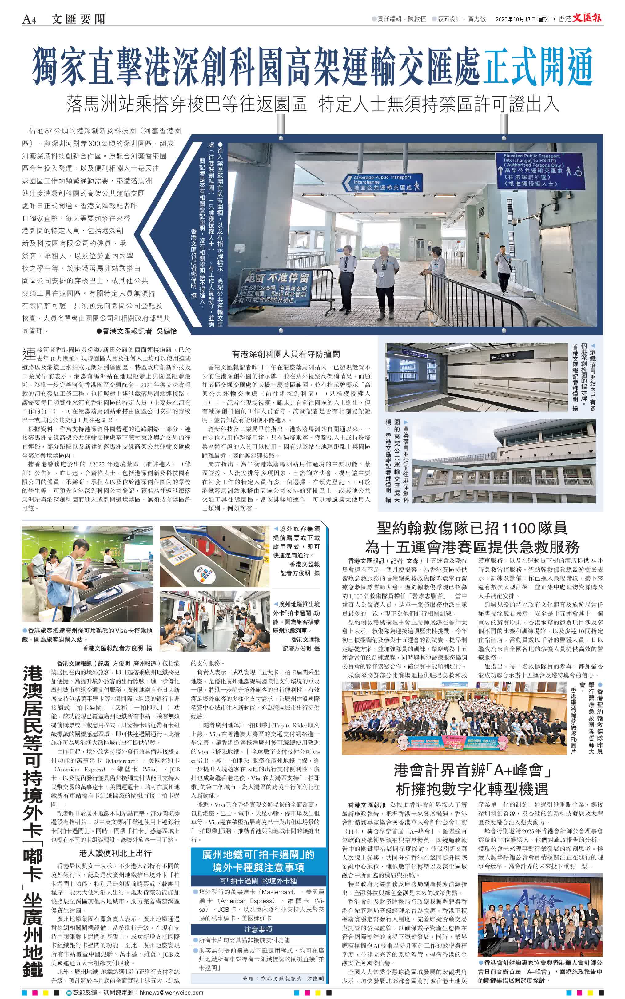 香港文匯報訊(記者 吳健怡)佔地87公頃的港深創新及科技園(河套香港園區),與深圳河對岸300公頃的深圳園區,組成河套深港科技創新合作區。為配合河套香港園區今年投入營運,以及便利相關人士每天往返園區工作的頻繁通勤需要,港鐵落馬洲站連接港深創科園的高架公共運輸交匯處昨日正式開通。香港文匯報記者昨日獨家直擊,每天需要頻繁往來香港園區的特定人員,包括港深創新及科技園有限公司的僱員、承辦商、承租人,以及位於園內的學校之學生等,於港鐵落馬洲站乘搭由園區公司安排的穿梭巴士,或其他公共交通工具往返園區。有關特定人員無須持有禁區許可證,只須預先向園區公司登記及核實,人員名單會由園區公司和相關政府部門共同管理。