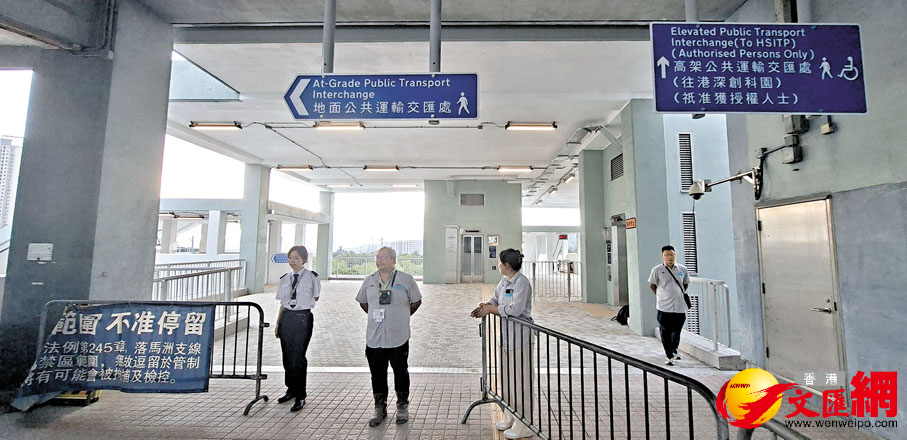 香港文匯報記者昨日下午在港鐵落馬洲站內,已發現設置不少前往港深創科園的指示牌,並在站外視察高架橋情況,而通往園區交通交匯處的天橋已屬禁區範圍,並有指示牌標示「高架公共運輸交匯處(前往港深創科園)(只准獲授權人士)」。記者在現場視察,雖未見有前往園區的人士進出,但有港深創科園的工作人員看守,詢問記者是否有相關登記證明,並告知沒有證明便不能進入。