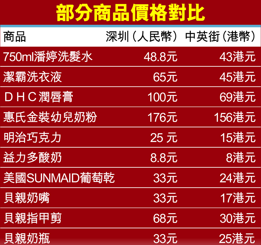部分商品價格對比