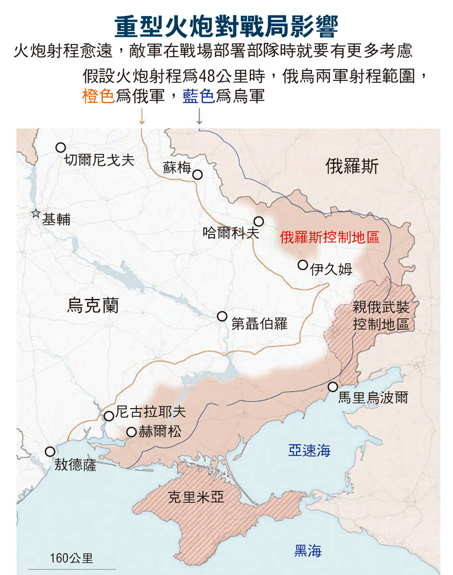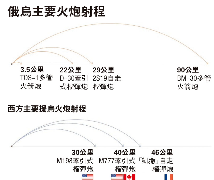 專家指出,遠程火炮是俄羅斯軍火庫的核心,在馬里烏波爾戰事中,俄軍就是透過遠程火炮的密集式炮轟,達到戰術目標。相比之下,烏克蘭在衝突初期只獲得西方提供防禦性和短程武器,這些武器雖然有效阻擋俄軍裝甲部隊在基輔一帶推進,但在面對俄軍遠程火炮下卻顯得乏力。