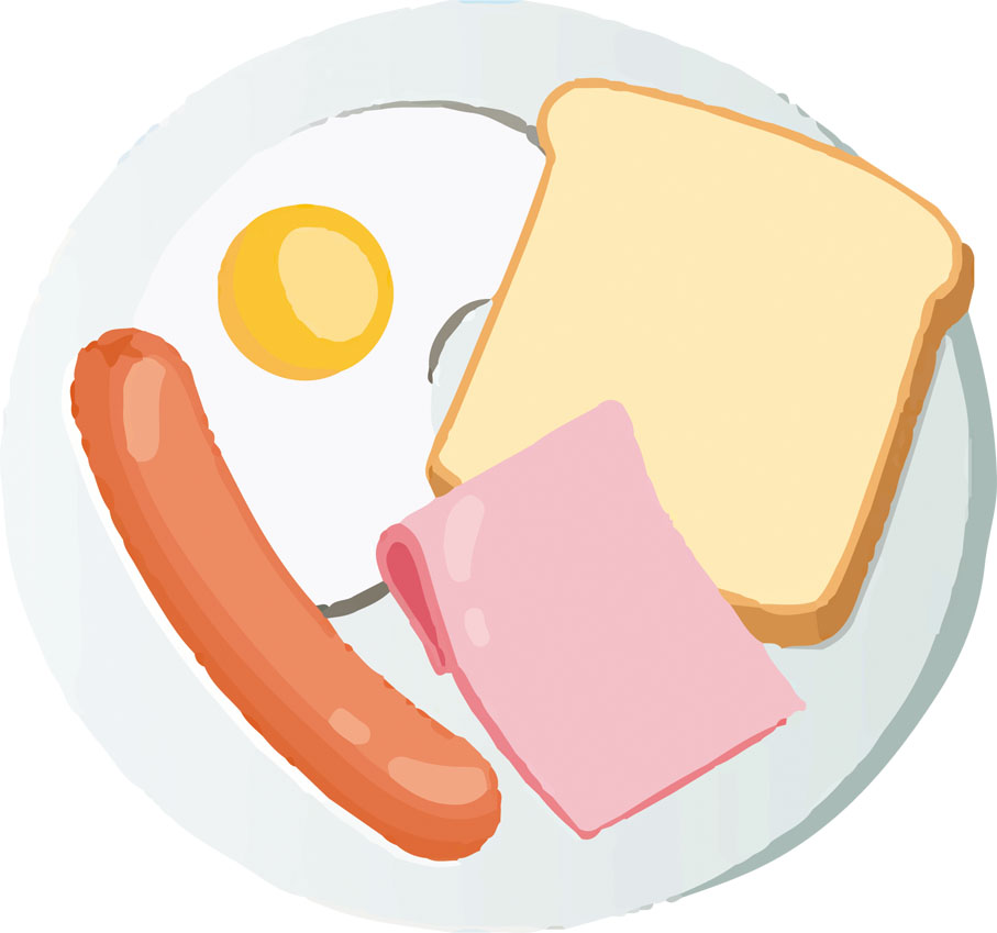 2、火腿香腸煎蛋方包早餐