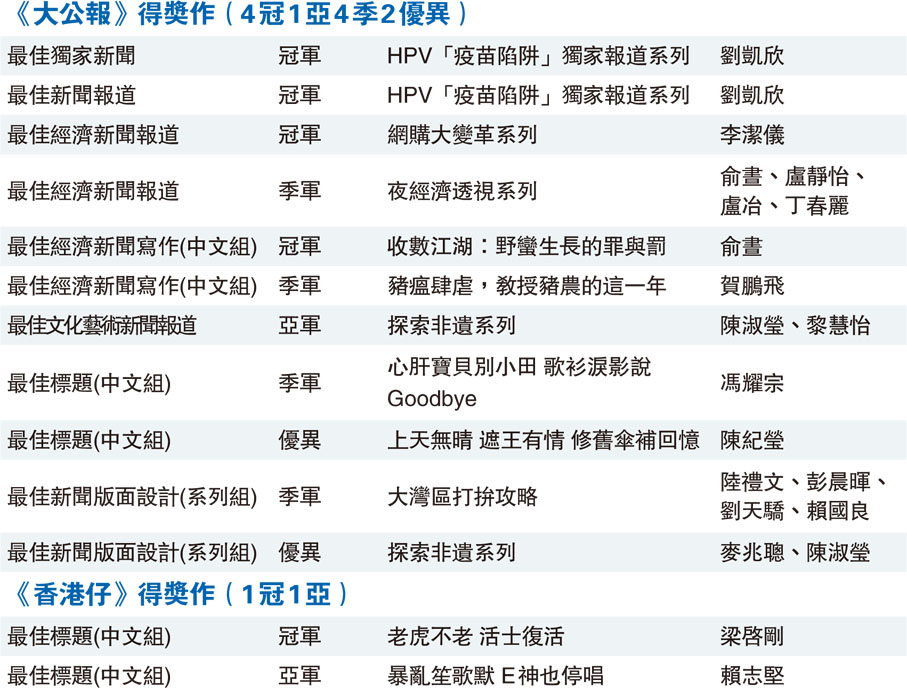 《大公報》得獎作(4冠1亞4季2優異)