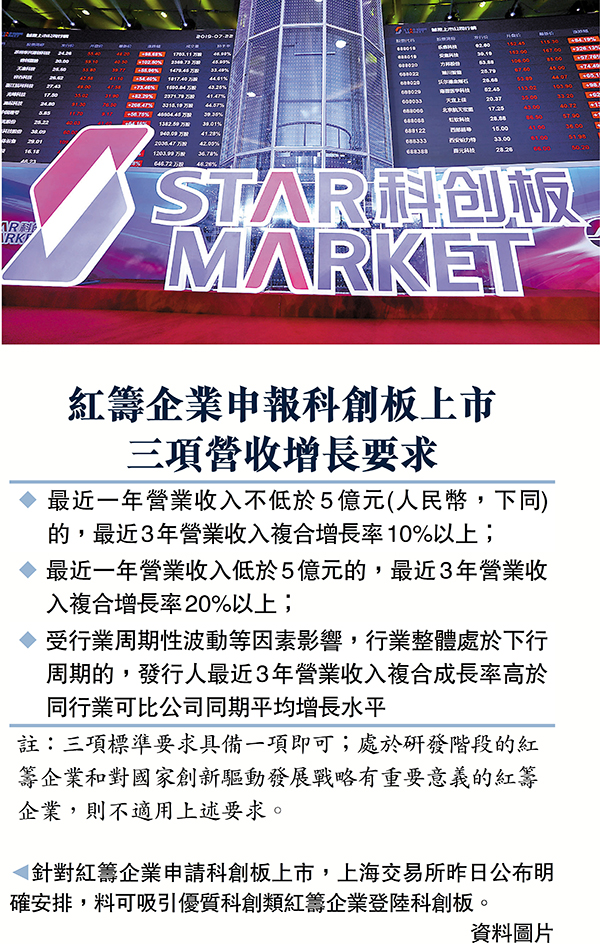 紅籌股上科創板開綠燈