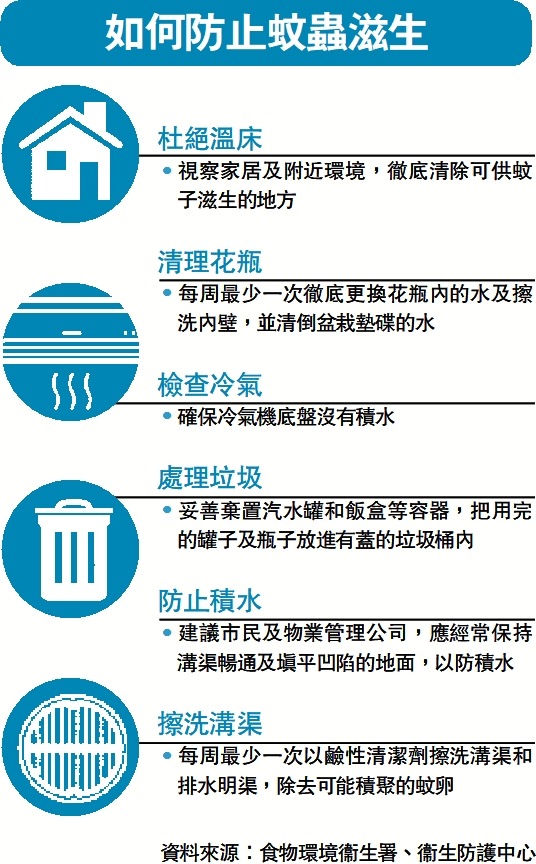 •視察家居及附近環境,徹底清除可供蚊子滋生的地方