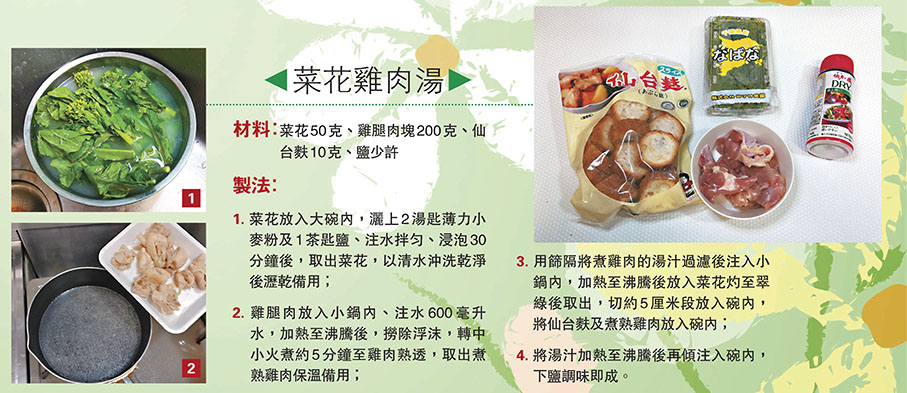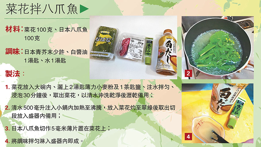 菜花,是一種春天的季節蔬菜,也被稱為食用菜花,這種蔬菜不但外形好看,還具有多種養生功效,使其成為一道在春天廣受人們喜愛的時令健康食品。菜花具有抗氧化、提高免疫力、補充維生素C和礦物質等多種養生功效,它不僅味道獨特,而且營養價值豐富,適合作為健康食品的選擇。無論是生吃或煮熟菜花,都能夠保留其中的營養成分,讓人們在享受美食的同時獲得健康的好處。因此,大家可以將菜花納入日常飲食中,享受它帶來的健康益處。 ◆文、攝︰小松本太太