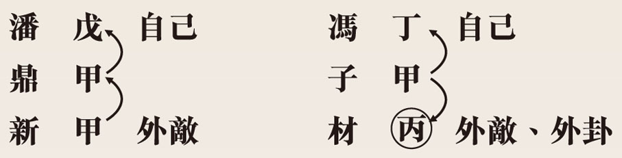 新 甲 外敵 材 丙 外敵、外卦