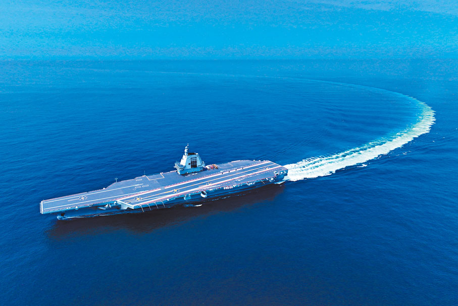 中國第三艘航母福建艦完成首次海試