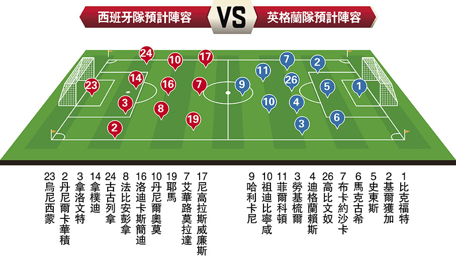 歐洲國家盃決賽香港時間15日凌晨3時上演,由西班牙與英格蘭在柏林奧林匹克體育場爭奪王者寶座。西班牙隊自2008年至2012年橫掃兩大國際大賽錦標後,一度陷入長達十年的低潮,但憑藉對青訓的信心及堅持,終在今屆歐國盃重返巔峰。英格蘭隊今屆賽事的保守和消極踢法雖然備受批評,不過在近十年湧現的天才們仍讓「三獅軍」有稱霸歐洲足壇的底蘊。今場歐國盃決賽不僅是兩大傳統勁旅的正面交鋒,更是兩國新世代天才一較高下的舞台。(ViuTV99台、Now618及688台周一3:00a.m.直播) ◆香港文匯報記者 郭正謙