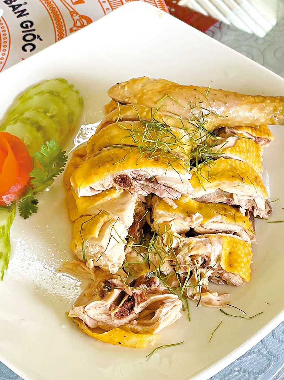可以容納近百人就餐的西貢—板約度假酒店餐廳,當天略顯冷清,只有中國旅行團一桌客人就餐。越方團餐六菜一湯,有紅繞雞肉、清蒸梅菜扣肉、魚堡、辣椒炒魷魚、排骨蘿蔔湯、白灼大白菜、越南春卷等,午餐結束時,桌上還有好幾份菜沒有吃完。同行的陝西遊客稱,參加德天跨境旅遊團,在越南吃到的團餐標準相比中國內地高,可享受到中國上世紀80年代接待外賓的待遇。