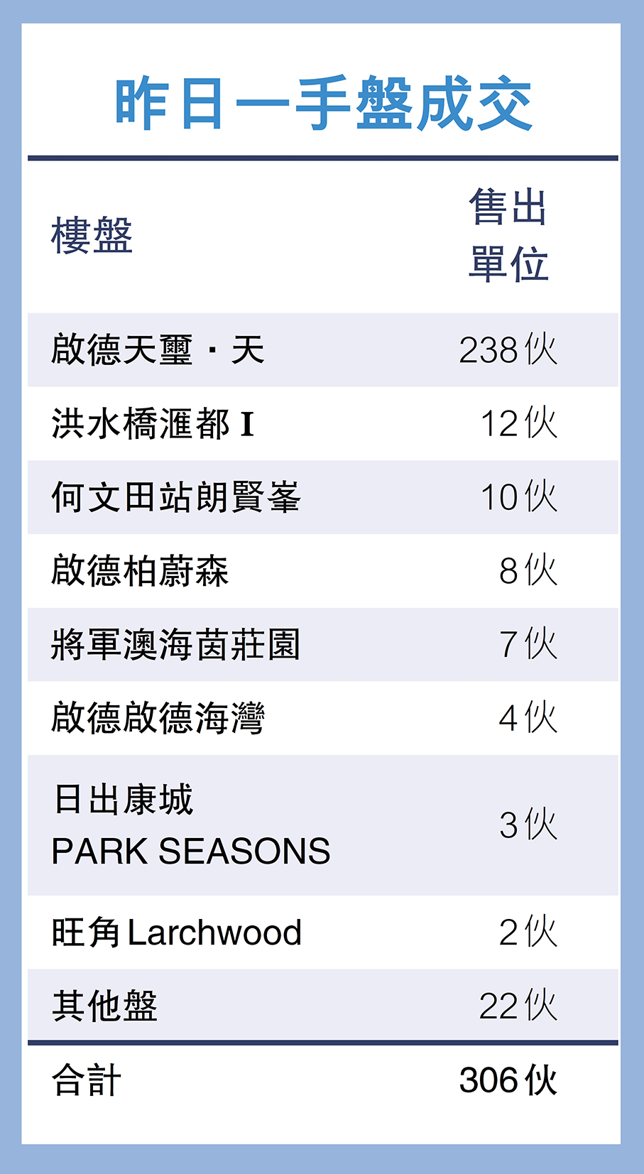 其他新盤方面,鷹君夥港鐵合作何文田站朗賢峯昨沽10伙,泛海國際劈價10%推售的洪水橋滙都 I其中30伙,昨亦沽12伙。