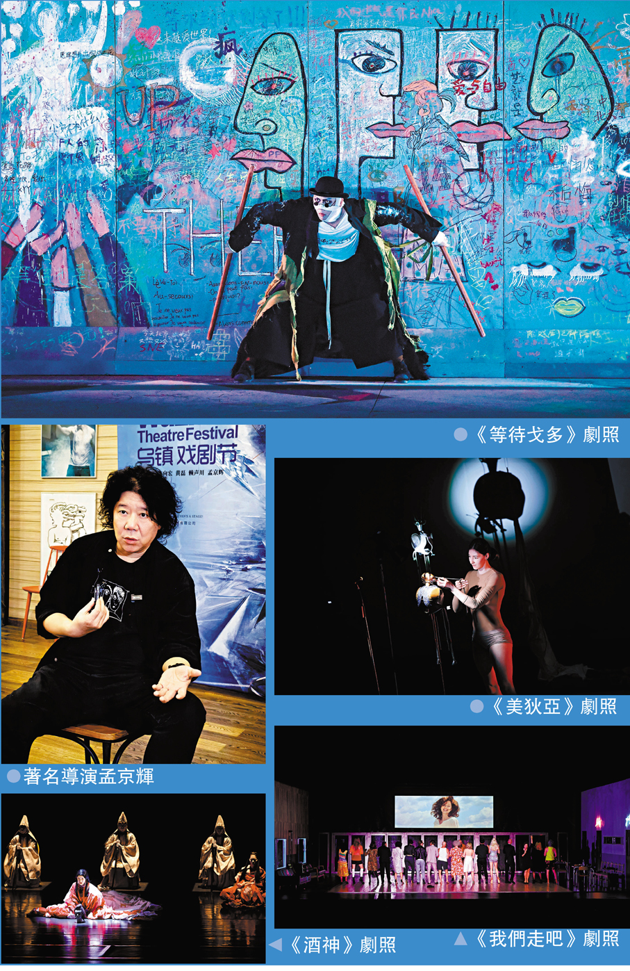 作為國際性的戲劇盛典,烏鎮戲劇節特邀劇目彙集了海內外一眾佳作。帶來了很多世界性潮流性的作品,如反映人生、反映生死的開幕大戲《我們走吧》、來自德意志劇院《卡爾·伯姆》、延續《暗戀桃花源》江濱柳和雲之凡別離四十年的賴聲川的《江/雲·之/間》,以及孟京輝的《等待戈多》,各種不同風格的作品,展示世界各地戲劇人們對生活的理解。