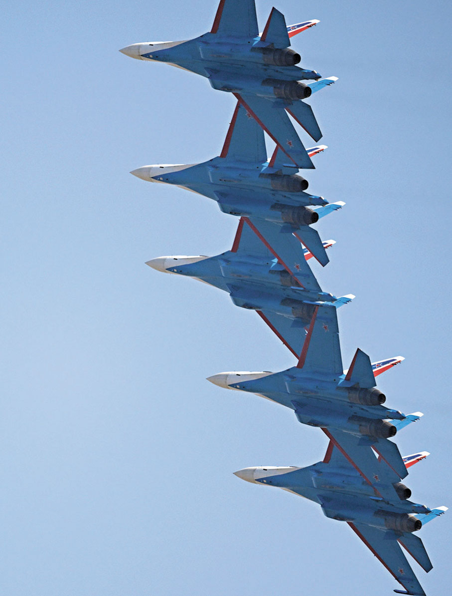 俄羅斯「勇士」飛行表演隊12日在珠海上空驚艷亮相,以六機編隊的形式表演「涅斯捷羅夫觔斗」「加力盤旋」「躍升半滾倒轉」「對頭跌升急降」「鬱金花開」等一系列驚險刺激的特技飛行動作。這是俄羅斯「勇士」飛行表演隊闊別8年後重返中國航展上空。