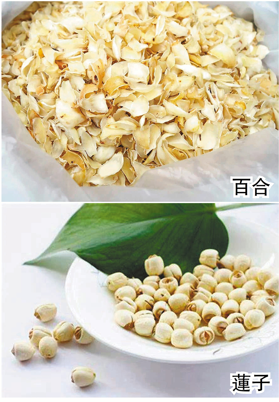 註:1. 若為新鮮蓮子及新鮮百合,分量可加至各60g。若有心煩及易熱氣,蓮子可帶蓮子心,若易腹瀉便溏則去蓮子心。