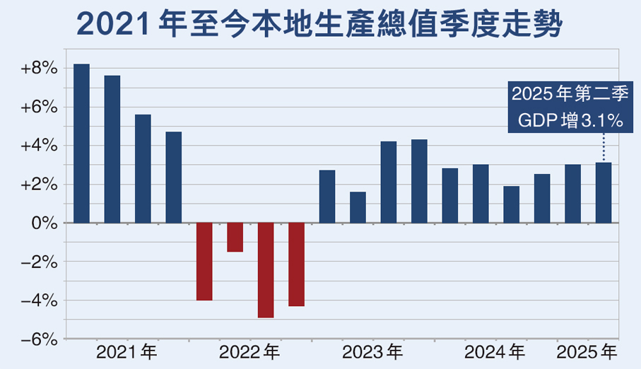 不過,她提到,美國在8月初公布的關稅水平仍然偏高,對部分商品的關稅政策不明朗,這些因素對國際貿易流向以及美國當地通脹和經濟活動的影響或會在今年稍後時間陸續浮現。此外,美國減息步伐的不確定性亦會影響本地投資氣氛。香港經濟往後的增長動力將在一定程度上取決於這些因素如何演變。