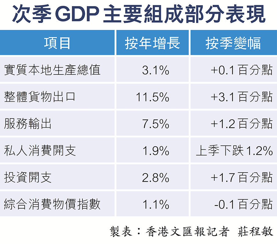 港次季GDP升3.1% 連續10季正增長