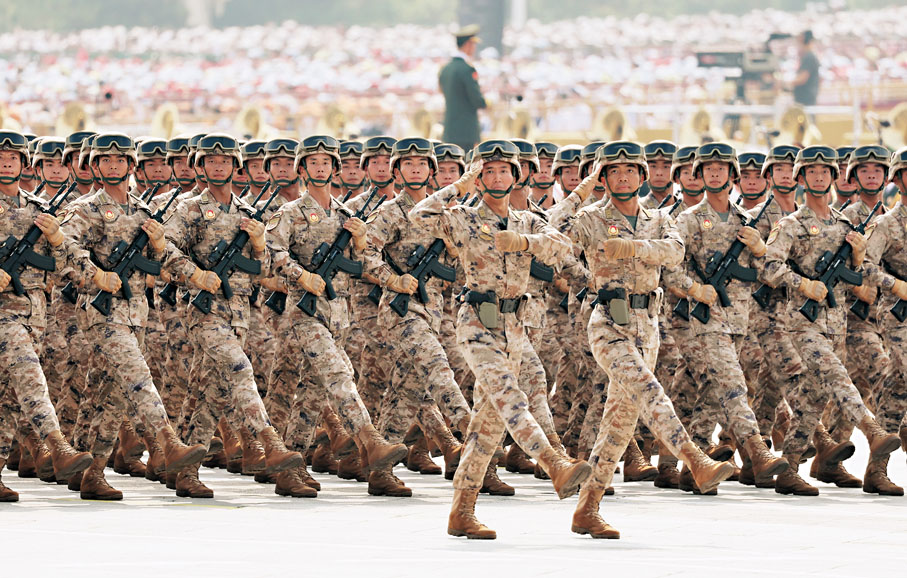 當天的閱兵儀式上,陸軍方隊、海軍方隊、空軍方隊、火箭軍方隊威武雄壯,展示鋼鐵長城的時代風貌;軍事航天部隊方隊、網絡空間部隊方隊、信息支援部隊方隊、聯勤保障部隊方隊精神抖擻,反映改革強軍的嶄新氣象;武警部隊方隊雄姿勃發,彰顯忠誠衛士的使命責任;預備役部隊方隊、民兵方隊氣勢昂揚,展現國防後備力量建設的時代風采;維和部隊方隊步履鏗鏘,體現中國軍隊用行動譜寫大國擔當、為構建人類命運共同體作出的重要貢獻。