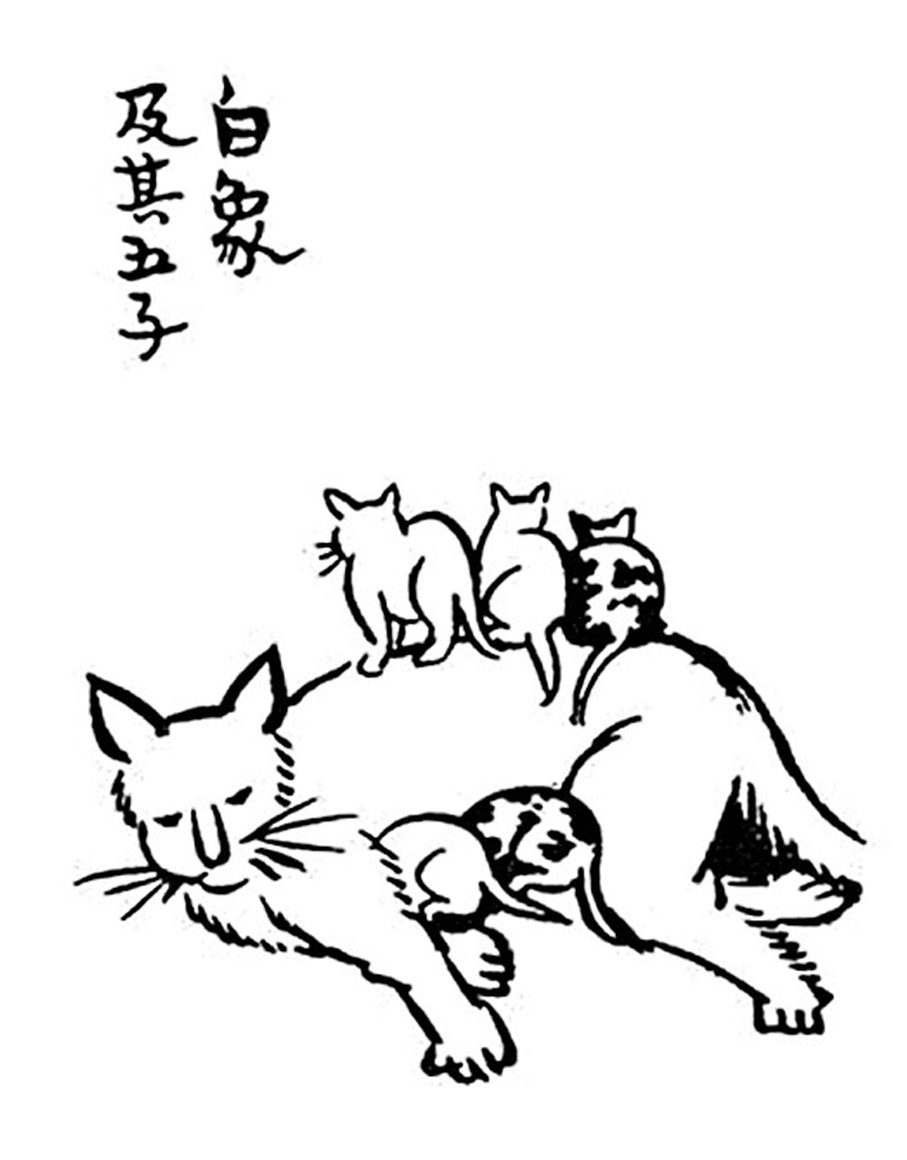 據說,一九九零年代北京文人圈子中有兩大「明星貓」,分別是冰心家的白貓和夏衍家的黑貓。冰心寫她家「咪咪」的散文不少,而豐子愷的水墨漫畫中,貓的身影亦常常出現。