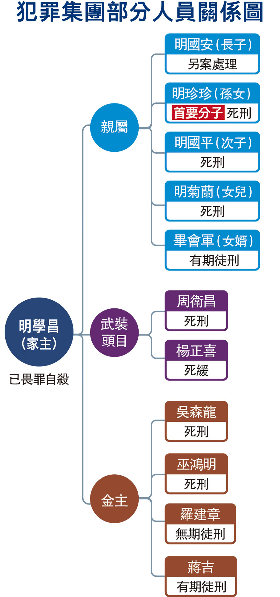 涉故意殺人等14罪 涉賭詐資金逾100億 明家犯罪集團案 11人死刑5死緩