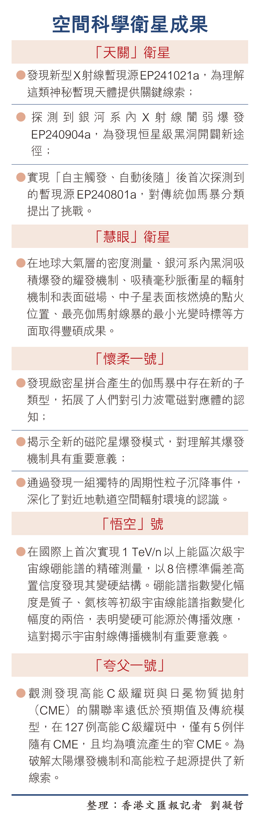 中國科學院國家空間科學中心24日召開空間科學先導專項最新亮點成果發布會。王赤表示,中國科學院空間科學先導專項自2011年啟動實施,已成功研製並發射「悟空」號、實踐十號、「墨子號」、「慧眼號」、「太極一號」、「懷柔一號」、「夸父一號」和「天關」衛星等八項科學衛星任務,取得了一系列重大原創成果,創造多項中國第一乃至世界首次。作為我國首個系統性支持空間科學研究的計劃,該專項標誌着我國空間科學創新發展進入「快車道」,實現了從「跟跑」「並跑」到部分領域「領跑」的歷史性跨越,推動中國空間科學家逐步走向世界舞台中央。