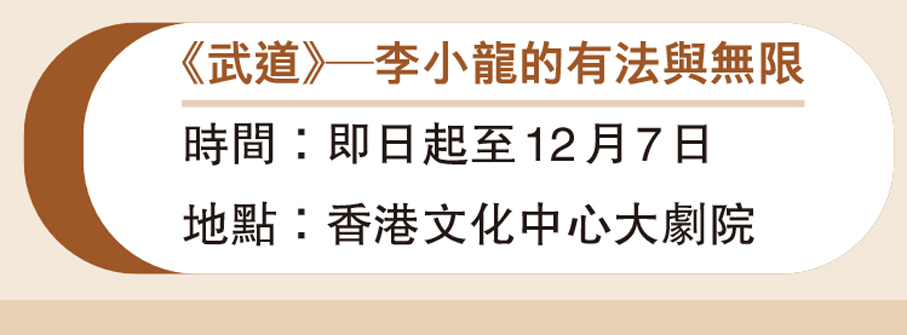 香港舞蹈團即將帶來大型舞劇《武道》,以紀念李小龍85周年誕辰。演出的副標題為「李小龍的有法與無限」,舞團藝術總監楊雲濤接受訪問時表示,這次創作將由李小龍的生平與武術哲學切入,以舞團舞者經過多年武術訓練錘煉出的身體質感,來展現李小龍對於身體極致的追求。該舞作獲入選「國家藝術基金2025年度大型舞台劇和作品創作資助項目」,亦為2025「亞藝無疆」藝術節節目之一。