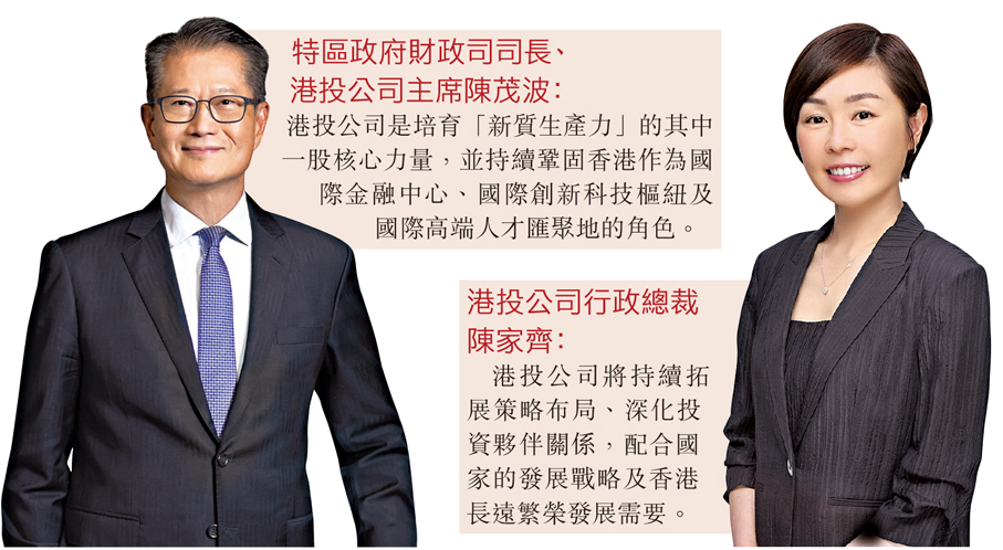 陳茂波在年報中強調,港投公司是培育「新質生產力」的其中一股核心力量,並持續鞏固香港作為國際金融中心、國際創新科技樞紐及國際高端人才匯聚地的角色。