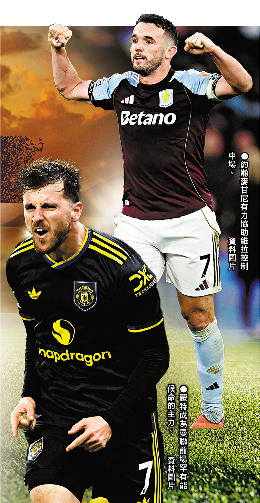禍不單行的是,曼聯是役還有巴西防中卡斯米路停賽,之前接近被棄用的烏拉圭防中烏加迪以及傳出一月希望外借離隊的明奈,相信要以替工身份落場,但前者今季狀態大幅下滑,難以作為中場屏障之餘,更隨時成為曼聯防線的缺口,因此衡量後維拉該可再下一城,衝擊十連勝。