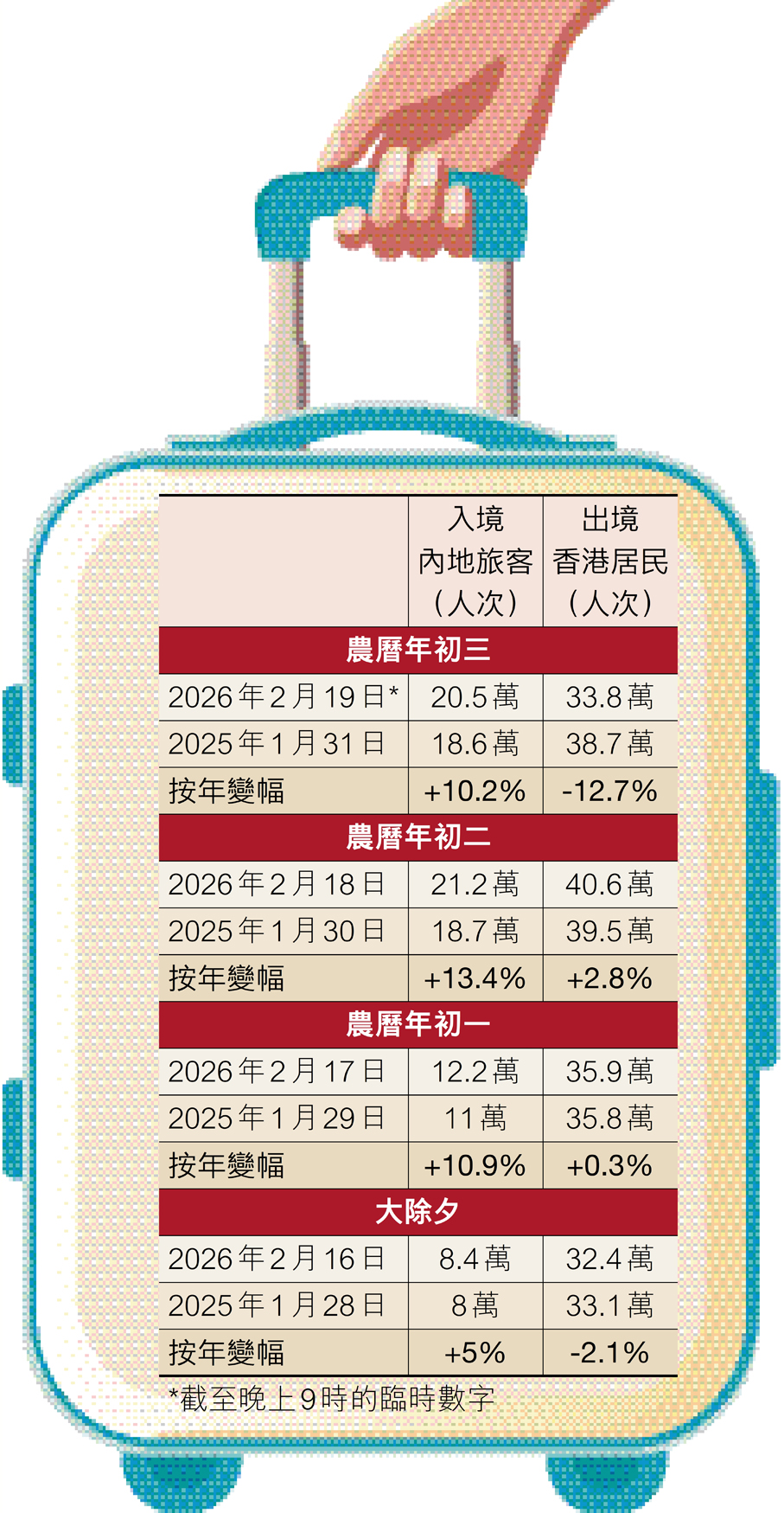 香港特區政府近年積極與旅遊業界攜手推動賽馬旅遊,成效愈見明顯。香港賽馬會昨日農曆大年初三按慣例在沙田馬場舉行「農曆新年賽馬日」,吸引逾9.8萬人入場,當中內地及海外旅客倍增至逾2萬人,刷新歷來賽馬日紀錄;全日11場賽事,共錄得逾18.4億元投注額。香港文匯報記者現場所見,場內四處皆可見到內地或外國旅客的身影,不少人大讚香港賽馬氣氛「無得頂」。馬會表示,2025/26年度馬季僅過一半已累積近21萬旅客人次入場,超越上季全季總數19.5萬人次,充分展現賽馬旅遊的獨特吸引力。為賽事主持開幕儀式的香港特區政府財政司司長陳茂波亦在社交平台發文表示:在今年馬年效應下,沙田馬場賀歲賽事更熱鬧,入場人次創疫後新高!