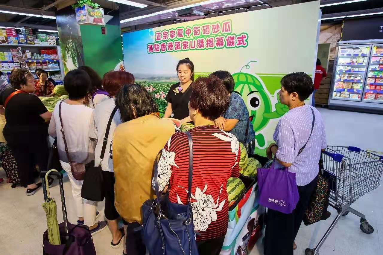 據了解,寧夏硒砂瓜因甘甜爽口、舒心如蜜,且生長在砂石上,被形象地稱為「石頭縫裏的西瓜」。中衛市通過5年時間建成百萬畝硒砂瓜產業帶。如今,硒砂瓜被做成中衛大產業,成為山區群眾脫貧增收的「金飯碗」。目前硒砂瓜已在香港華潤萬家「U購」「惠康」等300多家門店正式向廣大香港消費者開售,並有望於近期進一步擴大到全港600餘家超市門店。在此之前,對於香港的消費者來說,對於塞上的「寧夏中衛香山硒砂瓜」不甚了解,多數香港市民都不認識這一「塞上名瓜」,品嘗更是遙不可及的事情。為進一步提升香山硒砂瓜品牌知名度和影響力,寧夏中衛市充分發揮硒砂瓜「天然富硒、生態健康」的產品優勢,註冊辦理中衛硒砂瓜出境登記證書,並借助華潤創業市場分銷和水果基地採購渠道優勢,將硒砂瓜成功打入香港市場,讓香港消費者在家門口就可以買到最正宗的硒砂瓜。