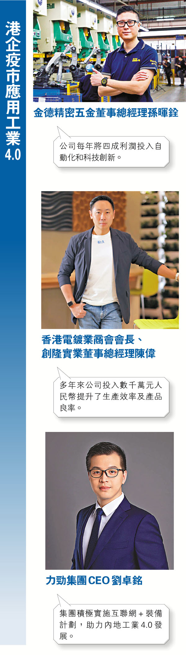 香港電鍍業商會會長、創隆實業董事總經理陳偉:多年來公司投入數千萬元人民幣提升了生產效率及產品良率。