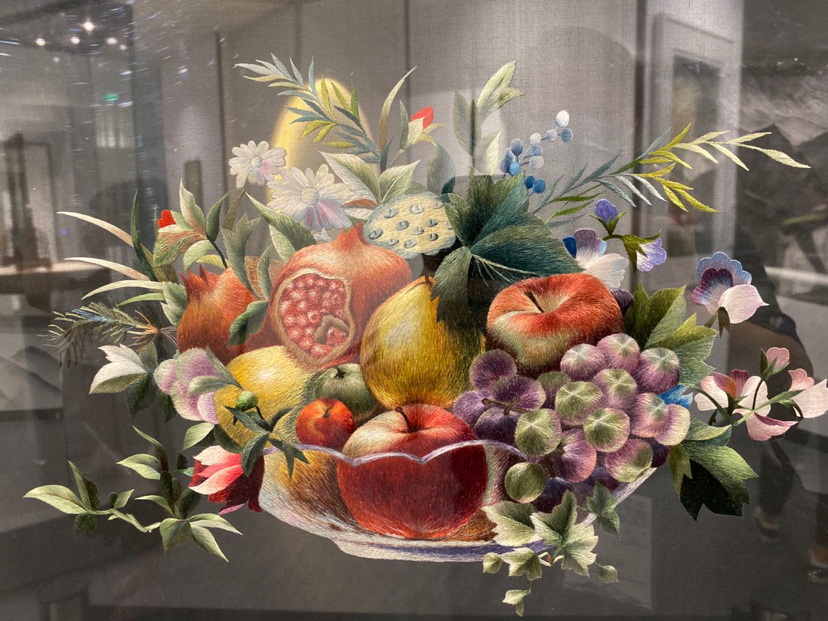 游江南水鄉,特別不要錯過的是距離樹山村半小時車程的「中國刺繡藝術館」,在這裏,可以近距離欣賞到館內頂級刺繡作品——現代刺繡大師梁雪芳的大作雙面三異綉《果盤與花籃》,綉面正反都有綉,一面綉有獻花,一面繡的是鮮果,但兩面的圖案、針法和色調都不同,異稿、異針、異色。