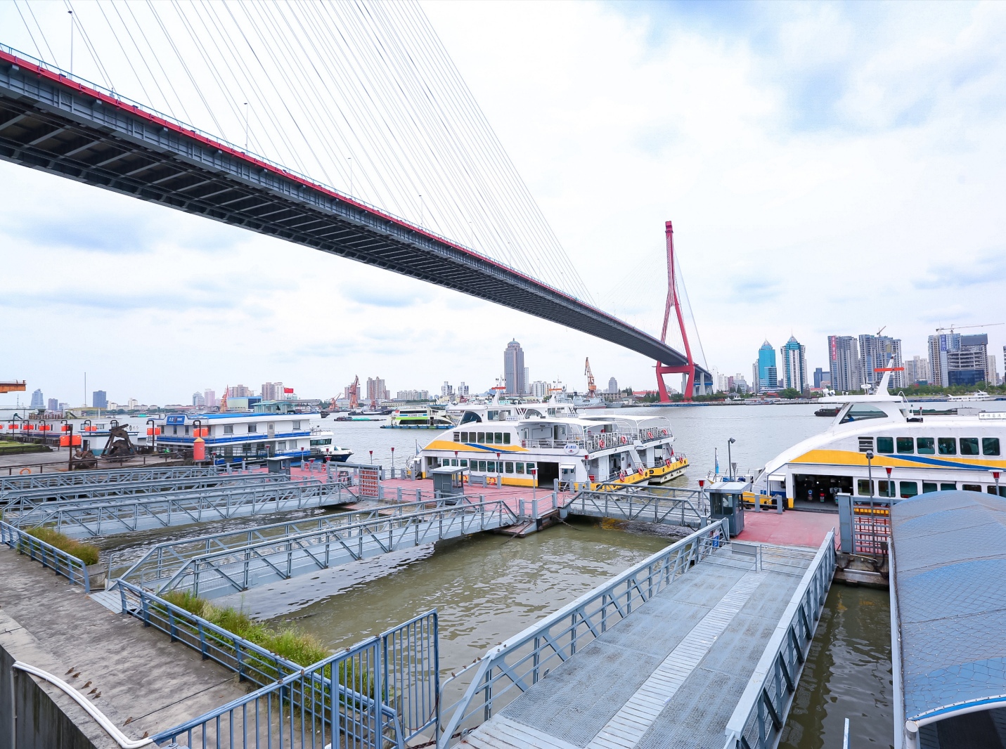 楊樹浦電廠最早可追溯至1913年建成的江邊電站,曾經是遠東最大的火力發電廠,設計師將碼頭上的塔弔、灰罐、輸煤棧道以及防汛牆後的水泵深坑保留,植入塔弔吧、風洞艙、深坑攀巖等極限體驗功能,使其成為黃浦江邊新的亮點;上棉十七廠前身為1922年建成的裕豐紗廠,2013年改造成為時尚中心,時尚中心新增的遊船碼頭,作為文化娛樂及旅遊觀光產業的一部分,通過景觀的優化與提升,將碼頭區域與整個時尚中心的功能、景觀、交通進行完美融合。