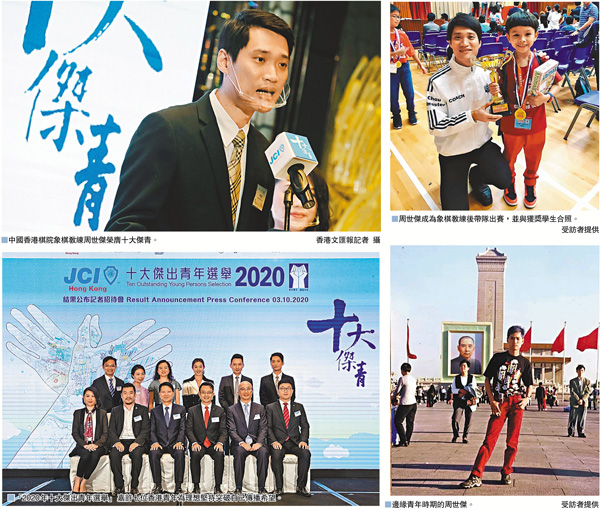 「相信,我可以!」是今屆「十大傑出青年」的主題,7名得獎者昨日亦順利出爐。他們雖然來自不同界別,卻有三大共同點,就是為理想堅持突破自己,面對挫折不退避,以及抱持着傳播正能量給別人的一團火。其中,周世傑最是傳奇:他曾經自暴自棄,更誤入黑社會、沉淪毒海,健康一度響警號,最後因為象棋而令其人生大翻盤。他勉勵年輕人的人生倘要「覆盤」,就要「檢討」,「要方向正確,做啱嘅事,方法可以修正,但方向一定要正確,如果出口係右邊,你定嘅方向係左邊,咁無論用咩方法都去唔到。」(尚有相關新聞刊B1版)■香港文匯報記者 成祖明