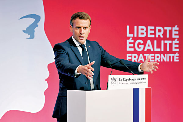 馬克龍說,「世俗主義是統一法國的黏合劑」,但他同時補充說道,為所有穆斯林去污名化是沒有任何意義的。■綜合報道