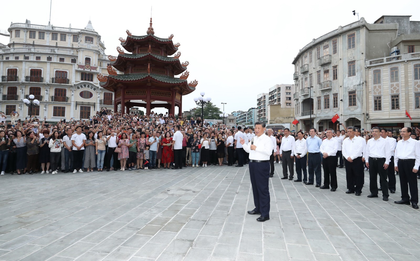 「主席好!」「汕頭人民歡迎您!」這一天,習近平總書記視察的汕頭小公園開埠區成為潮汕人民關註的焦點。記者從現場街坊拍攝的視頻看到,小公園開埠區涼亭翼然,插在騎樓上的五星紅旗隨風飄揚,眾多市民揮舞着小旗幟,沿街夾道歡迎,歡呼聲此起彼伏,熱鬧非凡。