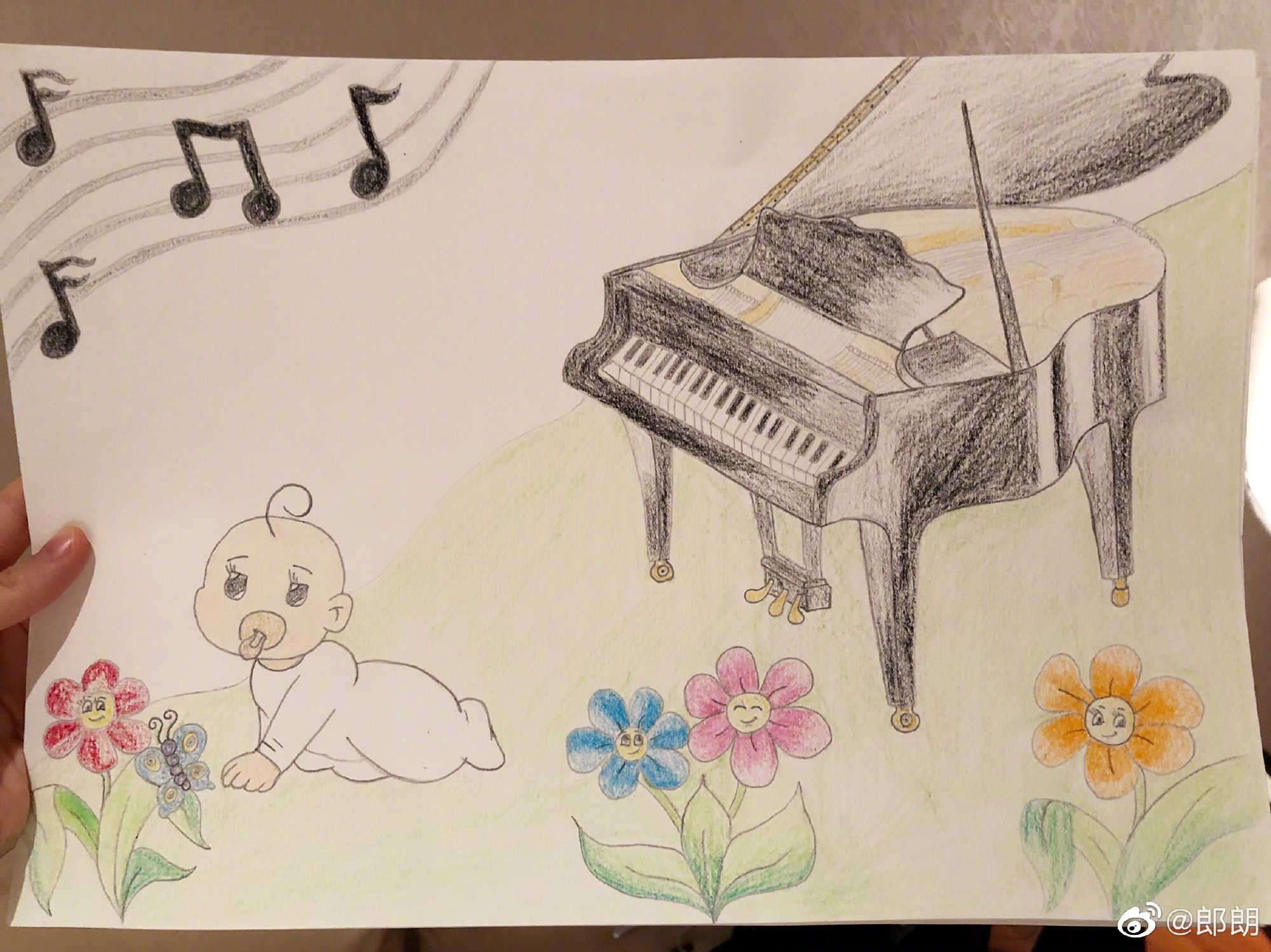 大公文匯全媒體報道:青年鋼琴家郎朗今天(15日)在微博宣布太太吉娜懷孕,意味着這對「音乐佳人」即將升級做父母。郎朗和吉娜今天同時在微博曬出一張畫作,畫的左邊擺放着一架鋼琴,右邊則是一個叼着奶嘴正在爬行的可愛寶寶,他們還配文寫道:「興奮地等待家庭音樂會的小聽眾」,側面宣布了吉娜懷孕喜訊。
