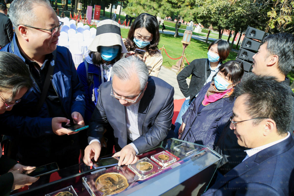 (香港文匯網記者 馬曉芳 北京報道)備受期待的2021中國辛丑(牛)年金銀紀念幣品鑒會15日上午在北京先農壇啟幕。根據央行2020年紀念幣發行公告,本套紀念幣共發行15枚幣,其中金質紀念幣9枚,銀質紀念幣6枚,均為中華人民共和國法定貨幣。其中最重的10公斤圓形金質紀念幣為精製幣,含純金10公斤,直徑180毫米,面額100000元,成色99.9%,最大發行量18枚。