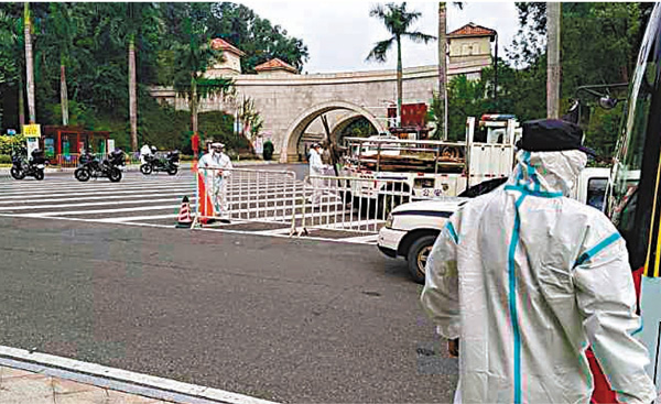 該名無症狀感染者王某16日對媒體表示,其此前曾給酒店的隔離人員送餐送快遞,在10月1日到15日期間無乘坐過公交和地鐵。香港文匯報記者了解到,王某所工作的隔離酒店為欣園酒店,位於廣州花都區芙蓉嶂度假村。16日上午,芙蓉嶂度假村外主要進出口已經封鎖,有穿着防護服的工作人員控制進出,現場拉起了兩道封鎖線。香港文匯報記者從多個旅遊App查詢發現,該度假村已經關閉,而位於該度假區內的酒店均已無法預定。