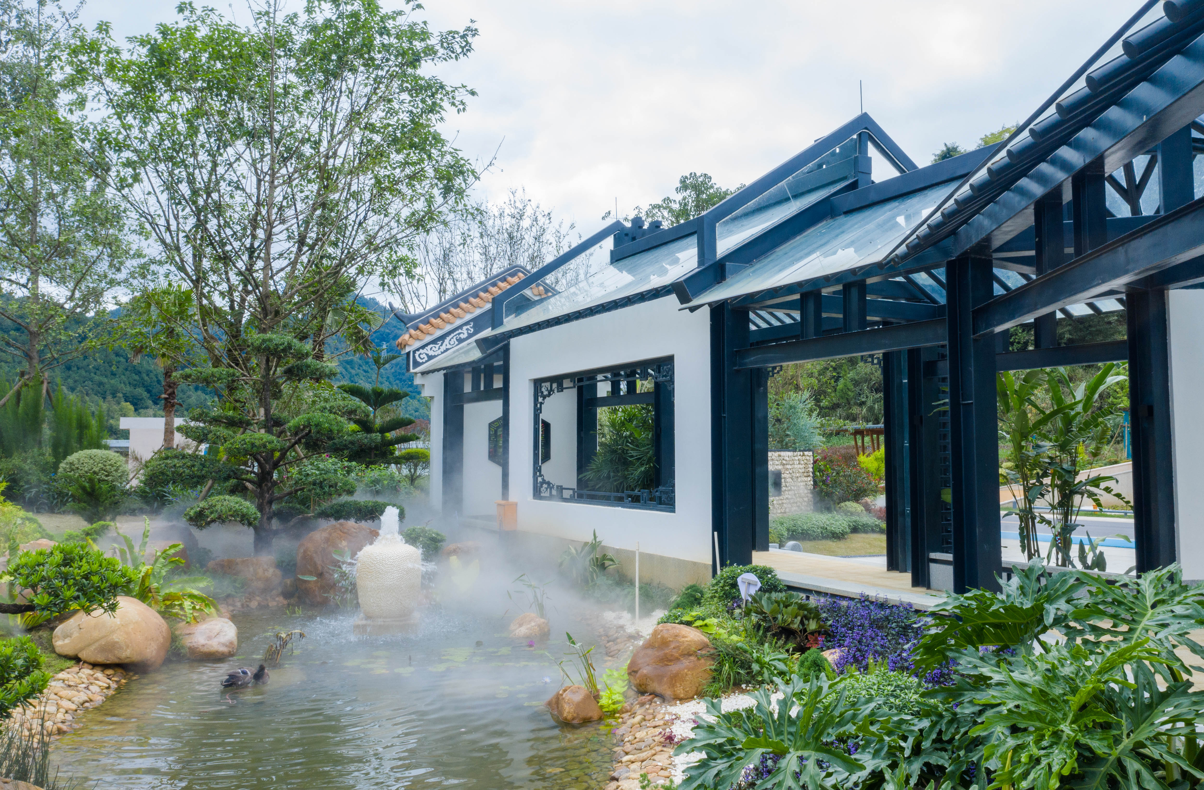 與嶺南廊院銜接的是南粵古驛道和飲水思源故事線節點,南粵古驛道是古代中國與南粵地區在文化與貿易交流的重要通道,與海上絲綢之路形成有重要的聯繫,該節點採用文化景牆窗口的形式展示廣東省在保護和復興南粵古驛道方面所做出的努力成果。從南粵古驛道踏上絲路體驗棧道,架空棧道就如航海線般蜿蜒曲折,沿途可竹林觀海、可霧裡探花、可休憩納涼,竹林觀海景點巧妙的利用園外借景的手法,打造多層次的遊園感受。