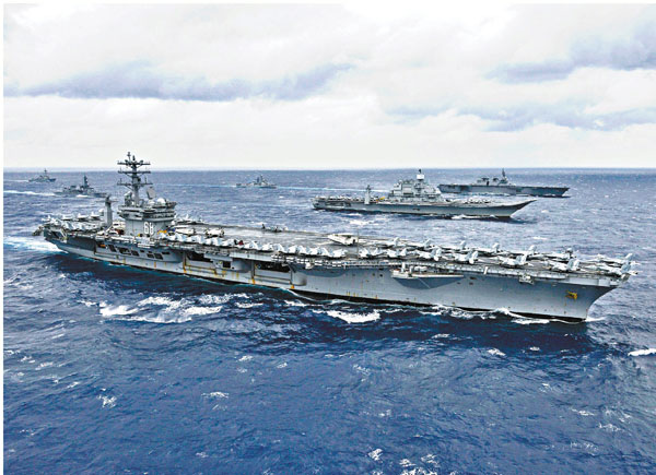 美國正推動與日本、印度、澳洲深化合作,以應對中國在區內擴大影響力。前印度海軍發言人夏爾馬稱,今次將是區內近年最大型軍演,美國和印度的航空母艦均會參與,以應對中國帶來的挑戰。 ■路透社