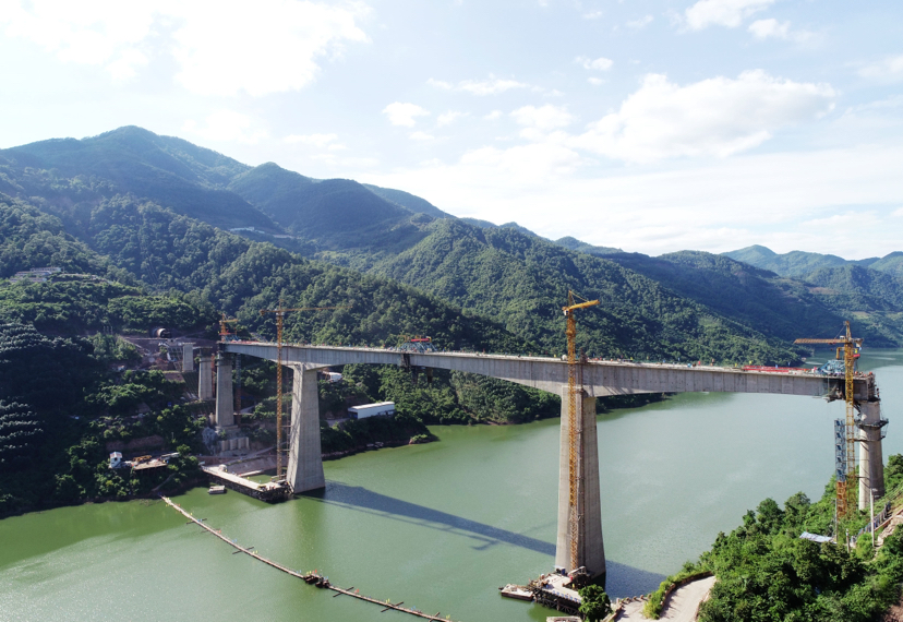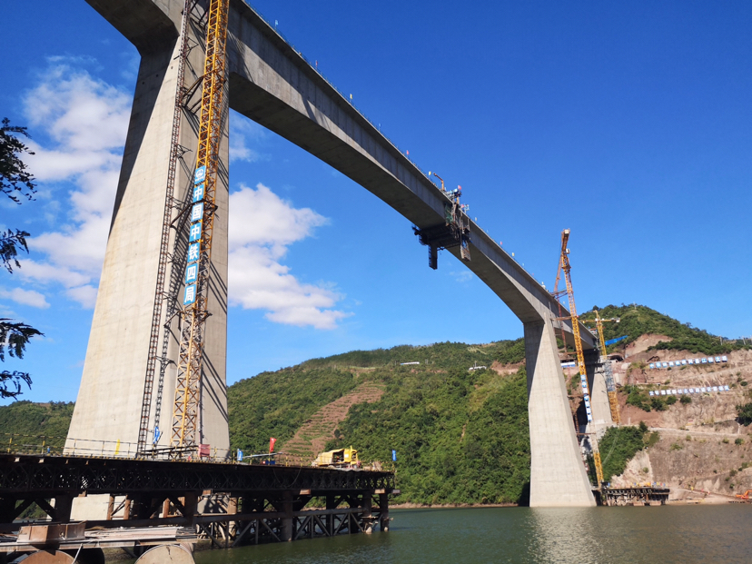 阿墨江雙線特大橋位於雲南省普洱市墨江縣境內,全長617米,共有9個橋墩,其中3、4號主墩墩高均為89.5米,加上承台和下方68米長的鑽孔樁,整個構築物超過180米,相當於60層樓的高度。一橋飛架阿墨江,南北天塹變通途。
