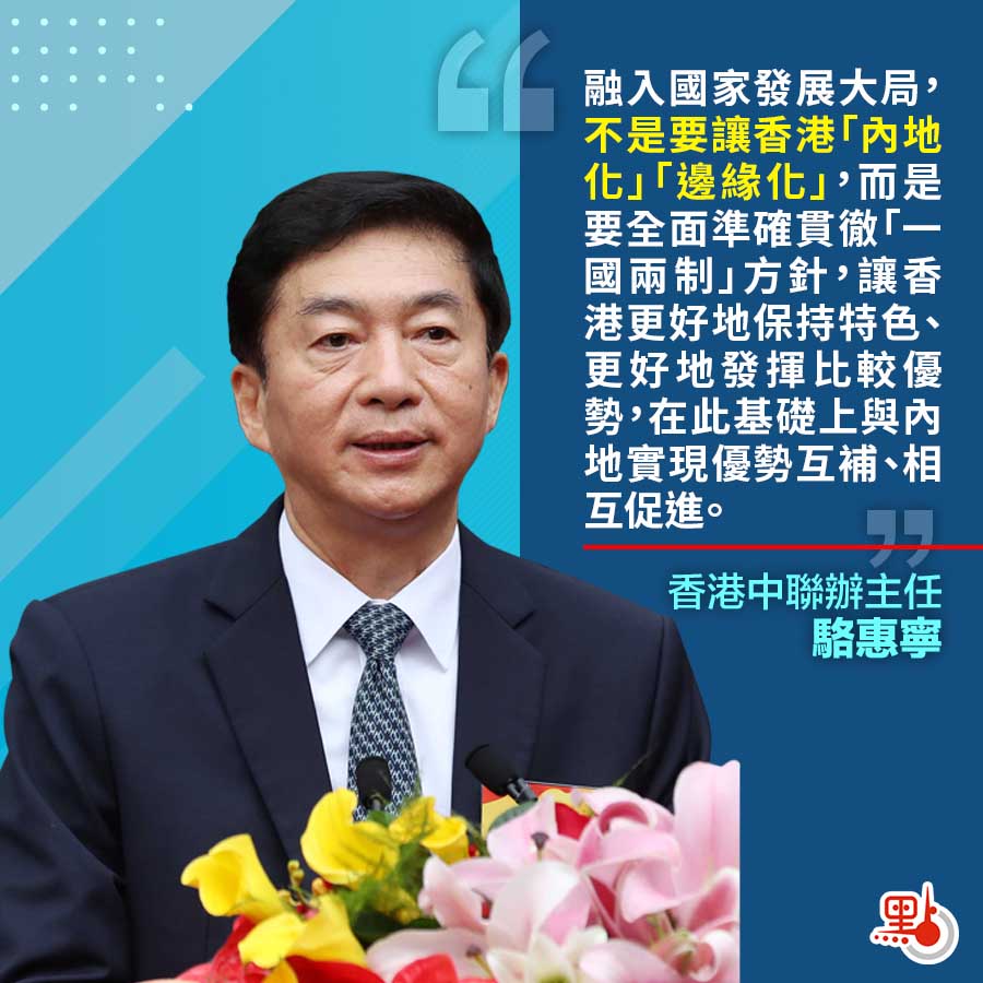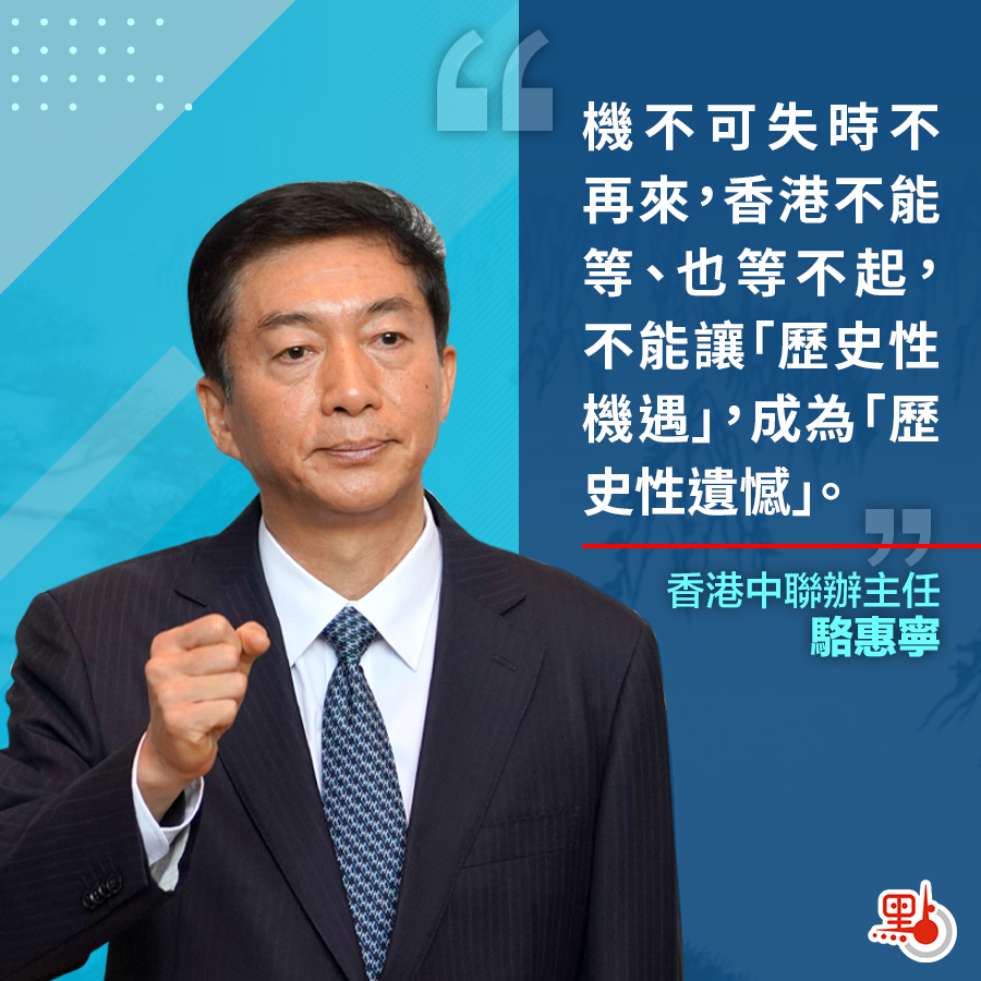 大公文匯全媒體報道:10月20日下午,香港中聯辦舉辦學習中共中央總書記習近平在深圳經濟特區建立40周年慶祝大會上的重要講話精神座談會,邀請香港各界代表人士座談交流、聽取意見。香港中聯辦主任駱惠寧主持並講話,他強調,機不可失時不再來,香港不能等、也等不起,不能讓「歷史性機遇」,成為「歷史性遺憾」。