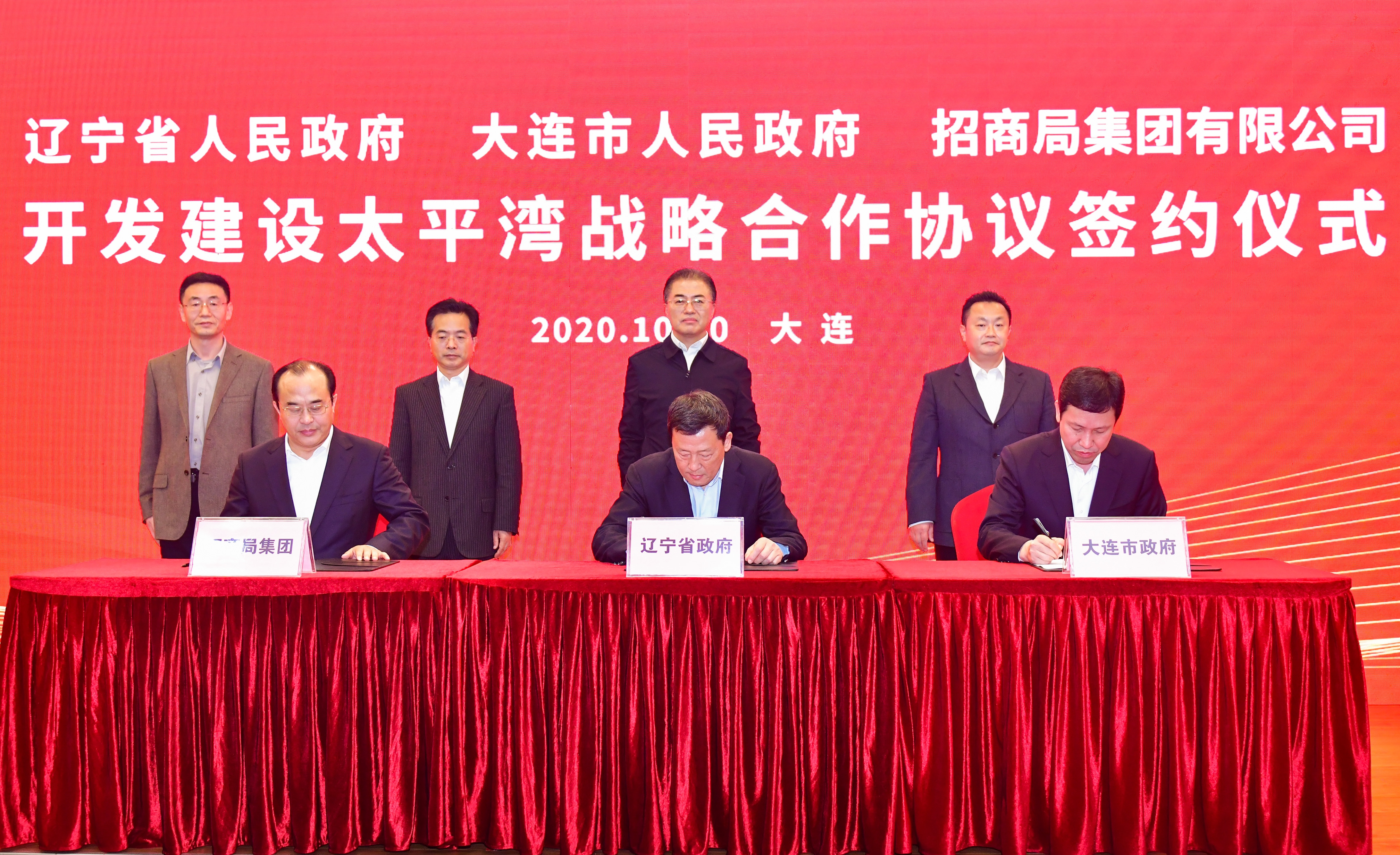 當日,在國務院國資委副主任翁傑明、大連市市長陳紹旺、招商局集團董事長繆建民和國務院國資委改革局副局長唐祖君的共同見證下,遼寧省副省長崔楓林、大連市副市長靳國衛、招商局集團副總經理李百安分別代表三方簽署協議。