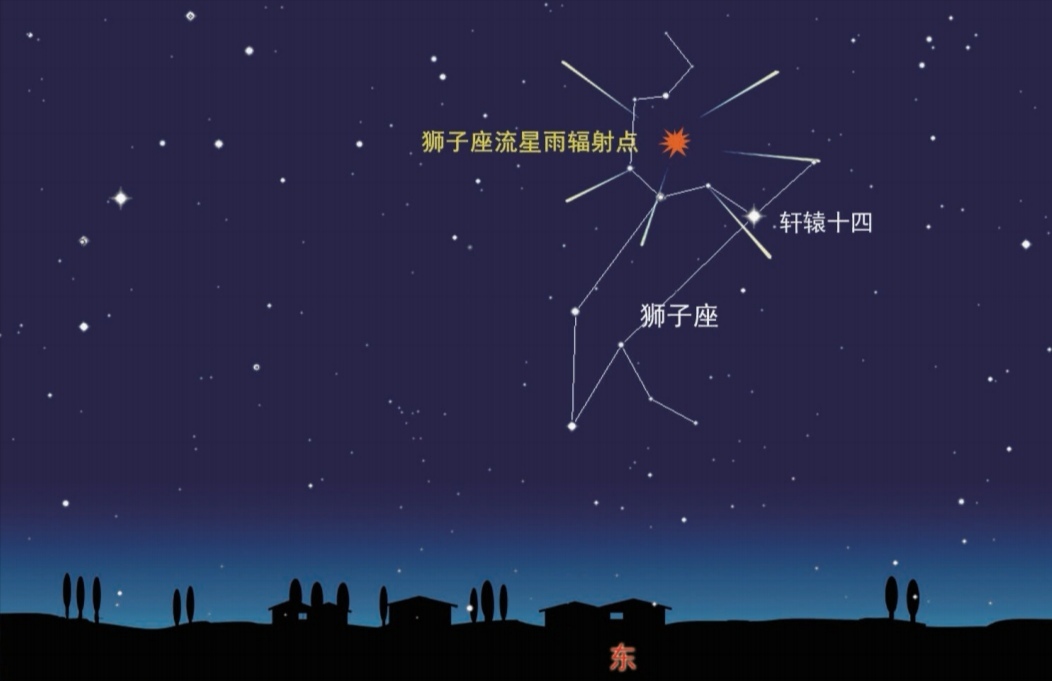 作為一個偶爾會出現大規模爆發的流星雨,獅子座流星雨很早就引起了人類的關注,由此它也被冠上了「流星雨之王」的美名。獅子座流星活躍在深秋時節,每年11月中旬迎來極大。通常年份里,它的ZHR只有10到20。但在其母彗55P/Tempel-Tuttle上次回歸的1998年,ZHR短時達到了上百顆,屬於流星暴雨級別。隨後的2001年,獅子座流星雨再次活躍,而且有很多火流星出現。55P/Tempel-Tuttle彗星的回歸周期約為33年,如果將這一周期和爆發聯繫起來,那近十幾年我們可能很難再觀測到流星暴雨了。但如果恰巧地球經過此前彗星回歸留下的塵埃團中心區域時,獅子座流星雨的流量還是有可能出現小幅增加的。根據目前的預報,今年的極大出現在北京時間11月17日19時。獅子座流星雨的輻射點午夜前後才會升起,後半夜至黎明是它的可觀測時間。對於中國的觀測者來說,11月17日和18日的午夜至黎明時段都可以嘗試觀測。