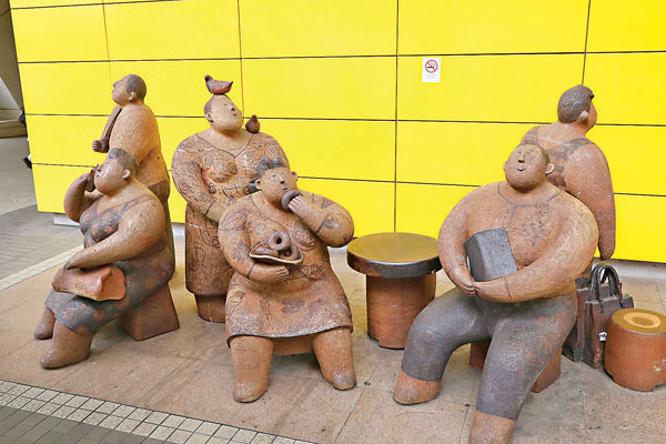 港鐵油塘站A出入口設有一套人物雕塑展覽,這組名為《行人、閒人》藝術雕塑品,由本地藝術家李慧嫻於2004年完成,於2005年安置在油塘站展覽。香港人大概不太能夠慢得下來,李慧嫻教授在創造油塘港鐵站台上那矮胖的形象時,也是對香港人無法慢下來的一種「指控」。