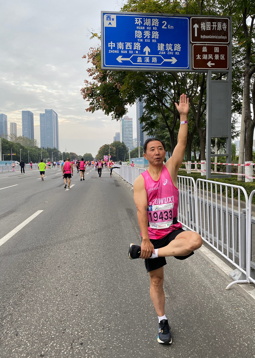來自北京的陸先生今年66歲,開賽之前,他在做肌肉拉伸。陸先生說,自己5年前開始跑馬拉松,先後去紐約、柏林、香港等境外參賽,在內地參加北京、上海、廣州、大連等地馬拉松賽,「跑全馬的成績是4小時21分。」陸先生對錫馬讚不絕口,稱「錫馬組織水平世界一流,所有環節信息化無縫對接。」