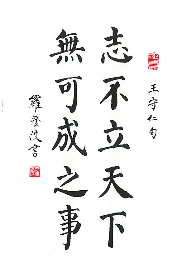 一般人都會明白,意志堅定的人做事不會半途而廢,成功的機會一定比意志薄弱的人高。不過,就王守仁的學說,我們對「立志」這個指引應該要有比較深刻的理解。「志」不單是「志向」的意思,必須加上「良知」的前提。同樣道理,「天下無可成之事」的「事」,不止於「事項」的意思,而是指「善行」。換句話說,「志不立,天下無可成之事」應理解為「不確立善良的意志,不可能成就世間的善行」。