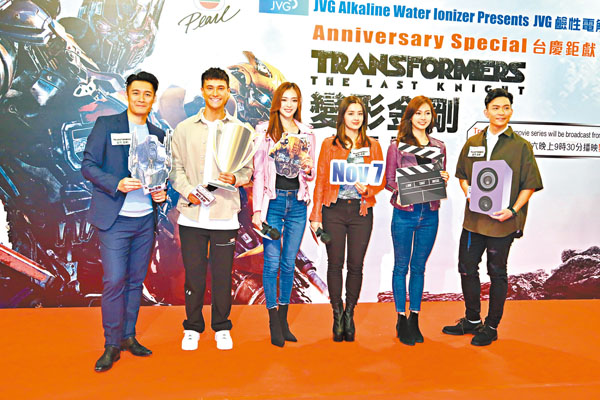 香港文匯報訊(記者 梁靜儀)應屆港姐謝嘉怡、陳楨怡、郭柏妍,聯同朱敏瀚、翟威廉及周志康昨日出席明珠台《台慶鉅獻:變形金剛 終極戰士》記者會,會上眾人分享迷上電影的原因,朱敏瀚笑言因戲中女主角靚女,這對男士來說好重要,現場眾人又分組玩遊戲。