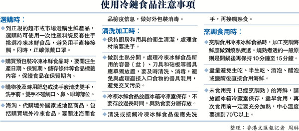 ◆盡量避免生吃、半生吃、酒泡、醋泡或鹽醃後直接食用海鮮。