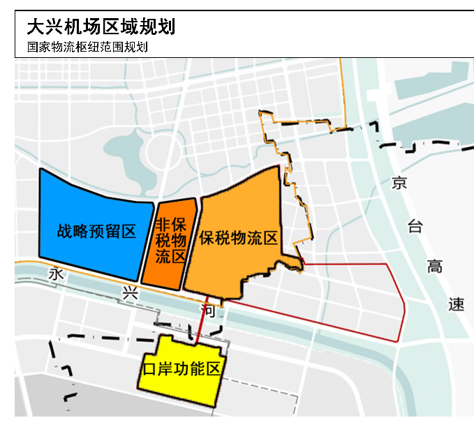 作為北京空港型國家物流樞紐的增量部分,大興片區包括北京大興國際機場周邊的口岸功能區、保稅功能區以及相關附屬配套區域等,共計4.3平方公里。大興國際機場綜合保稅區地跨京冀兩地,是京冀合作、協同發展的先行領域和重要載體。建設運營上,將採取「省市政府+兩地管委會+兩地投資公司」模式,打造京冀協同、區港聯動、關地一體的高效服務型綜保區。作為北京空港型國家物流樞紐的重要組成部分,大興機場綜保區以物流匯聚商流、信息流和資金流,以供應鏈融合產業鏈、創新鏈和消費鏈,統籌推進與臨空區、自貿區和雄安新區的協同發展,對標國際一流自貿區,以開放促進產業聚集和創新,將綜保區打造成為東北亞地區連接全球的資源要素配置中心,全國空港型綜保區高質量發展示範區,京津冀自由貿易港建設先行區和臨空經濟區發展核心引擎,大興機場臨空區將為此目標推動綜保區的各項建設。