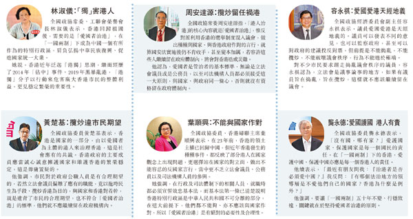 全國政協常委周安達源指,「港人治港」的核心內容就是「愛國者治港」,惟反對派利用香港的選舉制度混入議會,做出種種與國家、與香港政府作對的言行,就算國安法實施後仍不肯收手,甚至變本加厲,若容許這些人繼續留在政府體制內,將會對香港造成災難。